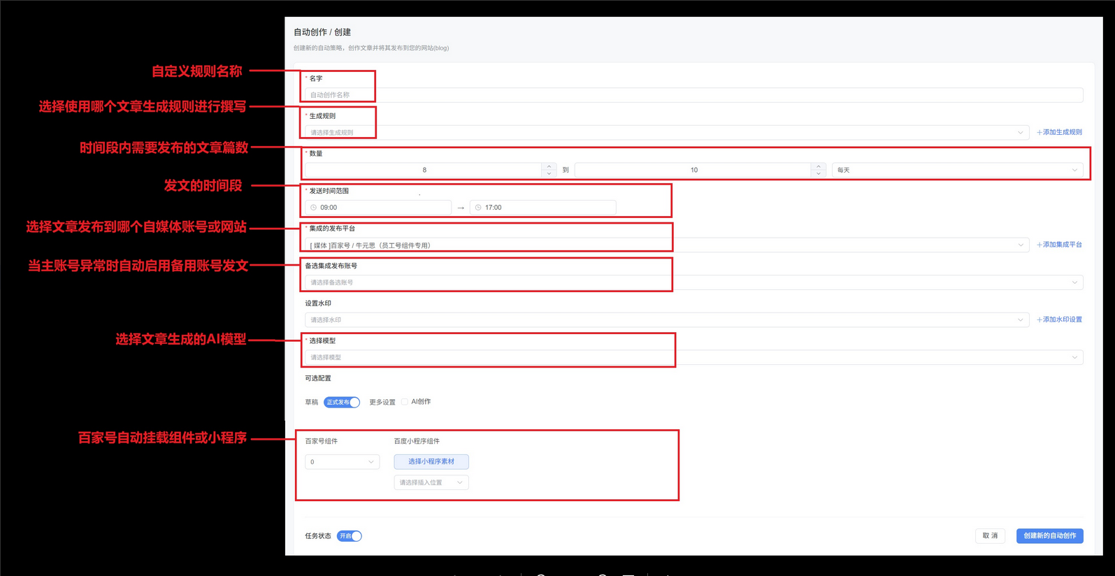 随着内容营销的内卷,还有许多团队使用人工手动编写文章,需要人工手动策划、撰写、排版、分发,最终导致内容产出慢、成本高,且难以维持全渠道的持续更新。其实,这种纯手动内容创作已经无法适应规模化内容营销的节奏了。今天这篇文章叫为团队带来新的内容创作模式:让AI自动写文自动发布,实现从选题生成、内容创作、多平台适配到自动发布的闭环,促进品牌内容创作的降本增效。 那么,到底那个AI工具可以实现这个自动写自动发呢? 现如今AI技术发展逐渐成熟,很多的AI自动创作也相应出现,但是并非所有的AI创作工具都好用的,我们需要的是能够自动创作符合品牌调性的文章,要保证生成的文章内容正确,结构完整,机器味不重,其中“汇创鸭AI”好像可以满足这个条件,它的创作原理是:导入品牌的原创优质文章、产品资料和官网,训练AI快速学习和了解品牌,构建智能知识库,让AI能够基于知识库创作出符合品牌风格的文章,可以有效突出品牌的核心价值。 团队怎么实现用AI自动发布进行内容创作? 第一步使用汇创鸭AI创建文章生成规则。根据关键词、标题、提示词三种形式配置规则,每个规则填入品牌的核心关键词,填入相应的品牌关键词,用于AI识别并生成文章,每个规则都能实时更改形式,如人称、语气风格、提示词等,让AI自动生成差异化文章,减少内容同质化。 第二步配置自动任务。每个团队人员都能自己配置自动任务,用自己创建的规则,填写每日发布的文章数量、发布时间和发布账号,规定时间一到,文章就会自动发布出去,无需人工手动排版,上传图片。 使用了汇创鸭AI,不仅能够实现自动写文自动发布,减少人工手动操作,降低成本,还能一键查询文章的SEO收录,在后台选择需要查询的品牌文章以及收录平台,很快就会显示出来文章的收录状态,团队管理人员还能根据文章收录数据统计员工绩效,刺激员工良性竞争,提升团队整体实力。 好的AI自动发文工具可以帮助品牌提升内容创作效率,还能降低成本,大家要试试吗?